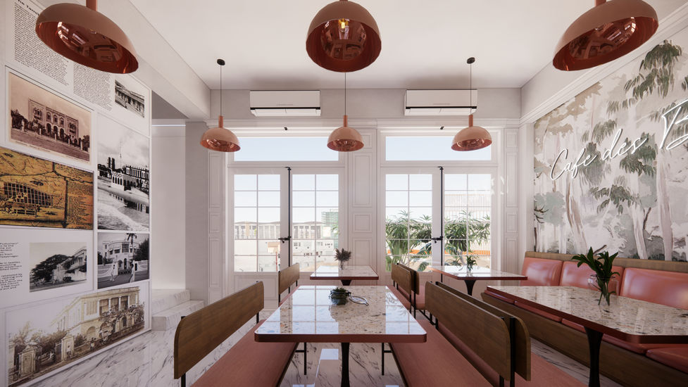Nestled in the charming coastal town of Pondicherry, this café interior design project draws inspiration from the region’s colonial heritage and timeless French elegance. The space is defined by its airy openness, created through the use of classic French windows that invite abundant natural light and a seamless connection with the outdoors.