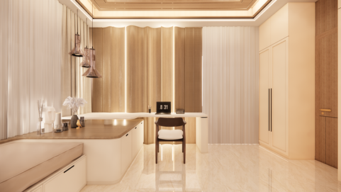 This high-end residence is a celebration of understated luxury, defined by a refined beige and gold palette that exudes timeless elegance. Designed with a contemporary sensibility, every element has been curated to create a space that feels both warm and elevated—where sophistication is expressed through subtle contrasts and flawless detailing.